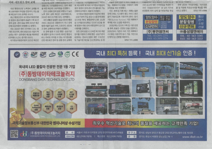 정보통신공사 신문에 정기 광고를 게재 중입니다.
