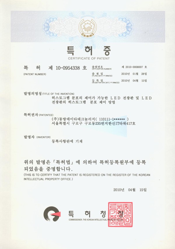특허 및 실용신안 특허-제 10-0954338호-히스토그램 분포의 제어가 가능한 LED 전광판 및 LED 전광판의 히스토그램 분포 제어 방법