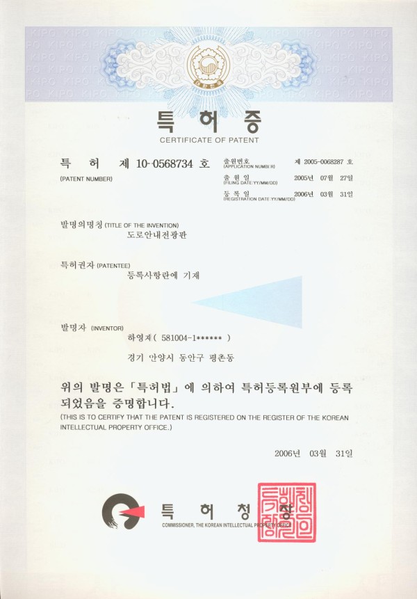 특허 및 실용신안 특허-제 10-0568734호-도로안내전광판 페이지 정보 작성자 관리자 댓글 0건 조회 4,003회 작성일 24-05-13 12:27 목록 본문 이전글실용신안-제 0400435호-전광판 구동제어장치 24.05.13 다음글특허-제 10-0400848호-전동차 내의 실시간 정보표시 시스템 24.05.13