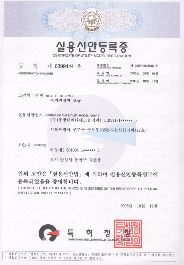 특허 및 실용신안 실용신안-제 0399444호-옥외전광판 모듈 페이지 정보 작성자 관리자 댓글 0건 조회 1,184회 작성일 24-05-13 13:52 목록 본문 이전글특허-제 10-0767748호-LED 전광판 시스템 24.05.13 다음글특허-제 10-0568734호-도로안내전광판 24.05.13