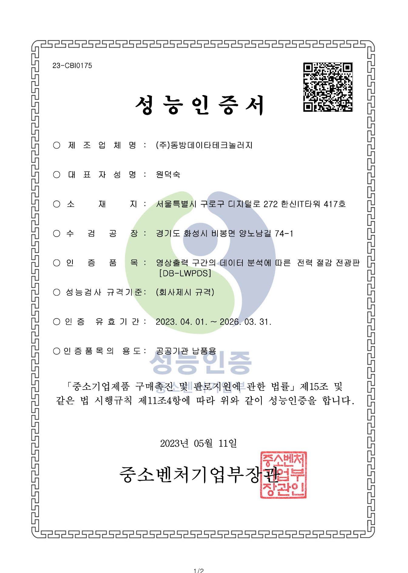 성능인증-영상출력 구간의 데이터 분석에 따른 전력 절감 전광판~26.03.31