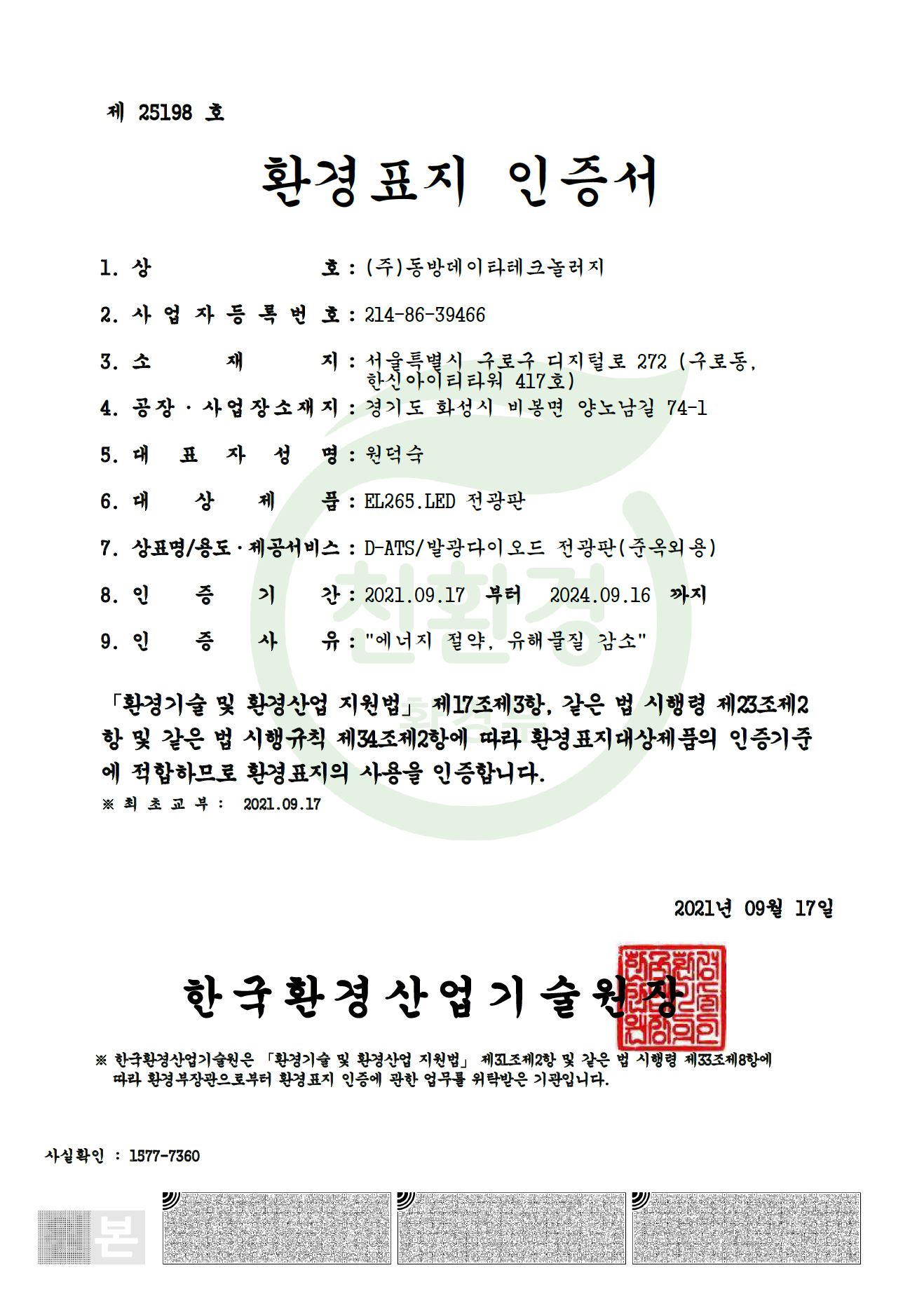 환경표지 인증-D-ATS(준옥외용)~24.09.16