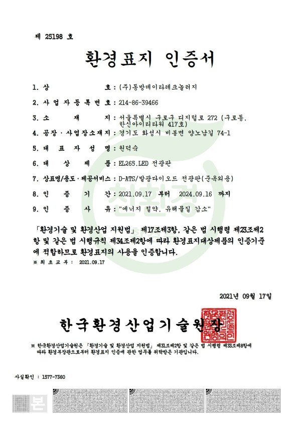 인증 및 등록현황 환경표지 인증-D-ATS(준옥외용)~24.09.16 페이지 정보 작성자 관리자 댓글 0건 조회 5,207회 작성일 24-05-14 10:44 목록 본문 이전글소프트웨어공제조합 등록 24.05.14 다음글방송통신기자재등의 적합등록 필증-D-ATS 24.05.14