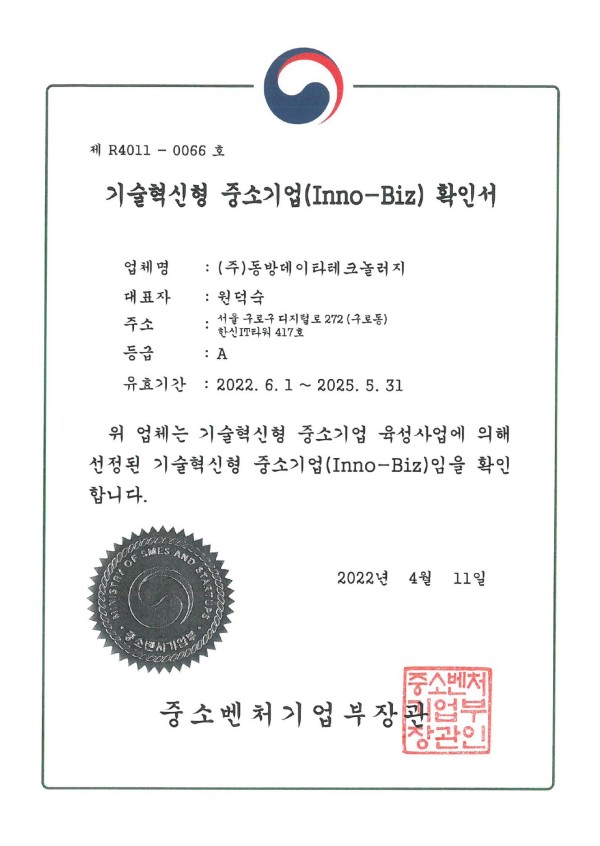 인증 및 등록현황 기술혁신형 중소기업 확인서-A등급 페이지 정보 작성자 관리자 댓글 0건 조회 5,509회 작성일 24-05-14 10:31 목록 본문 이전글조달우수제품지정-2023년 까지 24.05.14 다음글방송통신기자재등의 적합등록 필증-FANTAVISION-LDM/160/200/312 24.05.14
