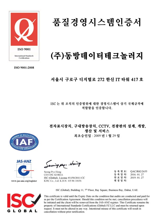 인증 및 등록현황 ISO-9001 페이지 정보 작성자 관리자 댓글 0건 조회 5,482회 작성일 24-05-13 16:47 목록 본문 이전글ISO-14001 24.05.13 다음글조달청 우수제품 지정 업체 표창 24.05.13