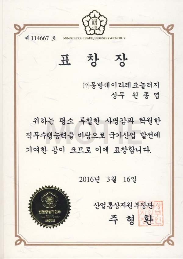 표창 및 수상내역 산업통상장관 표창 페이지 정보 작성자 관리자 댓글 0건 조회 5,103회 작성일 24-05-13 16:33 목록 본문 이전글정부조달우수제품협회-자문위원 위촉 24.05.13 다음글특허경영대상 대상 수상 24.05.13