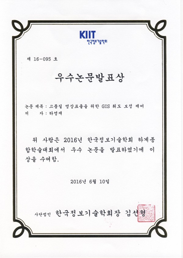 표창 및 수상내역 2016 한국정보기술학회 우수논문발표상 수상 페이지 정보 작성자 관리자 댓글 0건 조회 5,295회 작성일 24-05-13 16:34 목록 본문 이전글2016 한국전자공업협동조합 감사장 24.05.13 다음글정부조달우수제품협회-자문위원 위촉 24.05.13