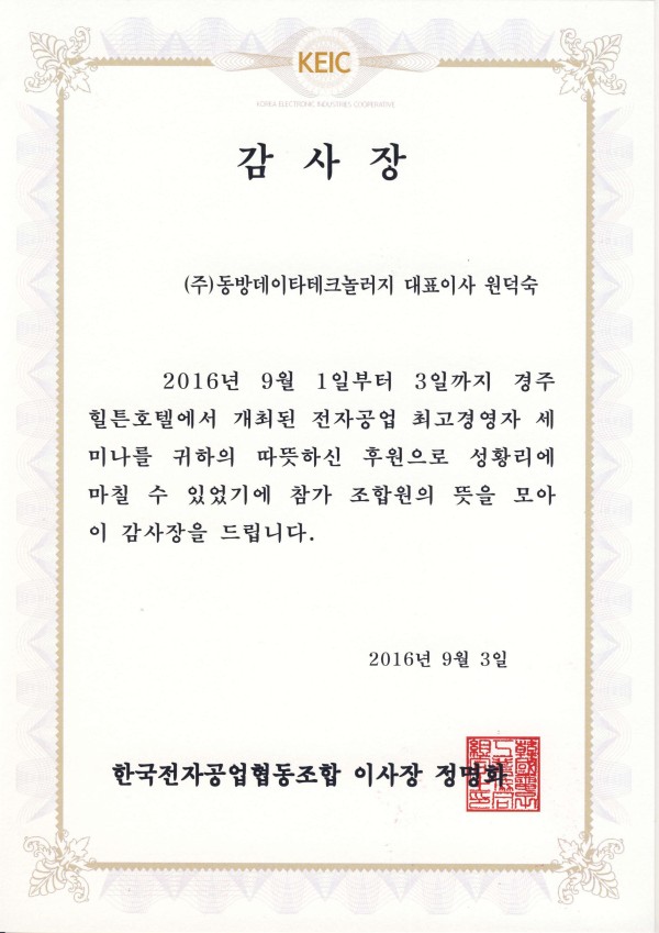 표창 및 수상내역 2016 한국전자공업협동조합 감사장 페이지 정보 작성자 관리자 댓글 0건 조회 5,459회 작성일 24-05-13 16:35 목록 본문 이전글2017 강소기업대상 24.05.13 다음글2016 한국정보기술학회 우수논문발표상 수상 24.05.13
