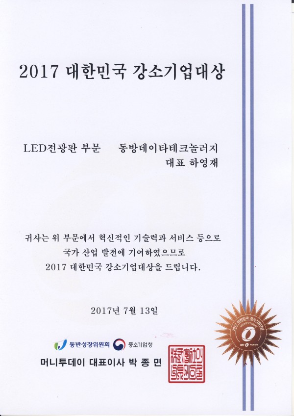 표창 및 수상내역 2017 강소기업대상 페이지 정보 작성자 관리자 댓글 0건 조회 5,679회 작성일 24-05-13 16:35 목록 본문 이전글2017 신기술실용화 국무총리상 수상 24.05.13 다음글2016 한국전자공업협동조합 감사장 24.05.13
