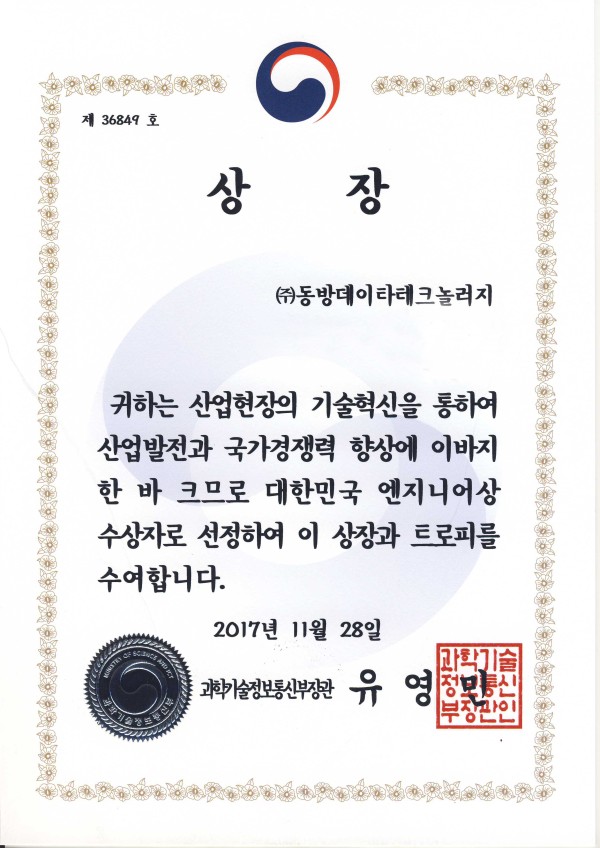 표창 및 수상내역 2017년 엔지니어상 페이지 정보 작성자 관리자 댓글 0건 조회 5,494회 작성일 24-05-13 16:37 목록 본문 이전글한국장애우마을 감사장 수여 24.05.13 다음글2017 신기술실용화 국무총리상 수상 24.05.13