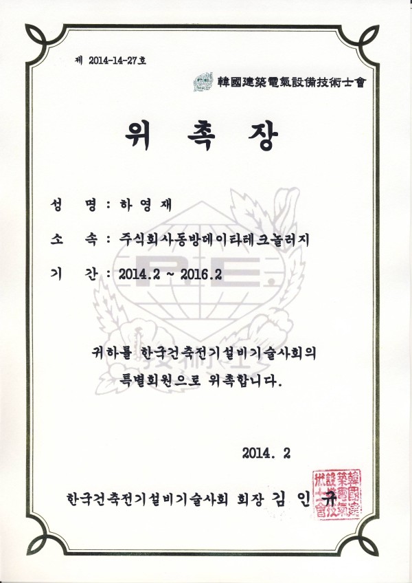 표창 및 수상내역 한국건축전기설비 특별회원 위촉장 페이지 정보 작성자 관리자 댓글 0건 조회 5,268회 작성일 24-05-13 16:25 목록 본문 이전글서울지방중소기업청 표창 24.05.13 다음글KPC한국생산성본부 인문학 최우수상 24.05.13