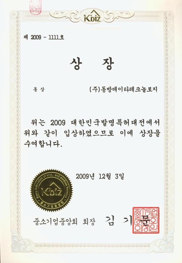 표창 및 수상내역 대한민국발명특허대전 동상 페이지 정보 작성자 관리자 댓글 0건 조회 5,377회 작성일 24-05-13 16:02 목록 본문 이전글기술혁신대전 금상 24.05.13 다음글뉴미디어대상 24.05.13