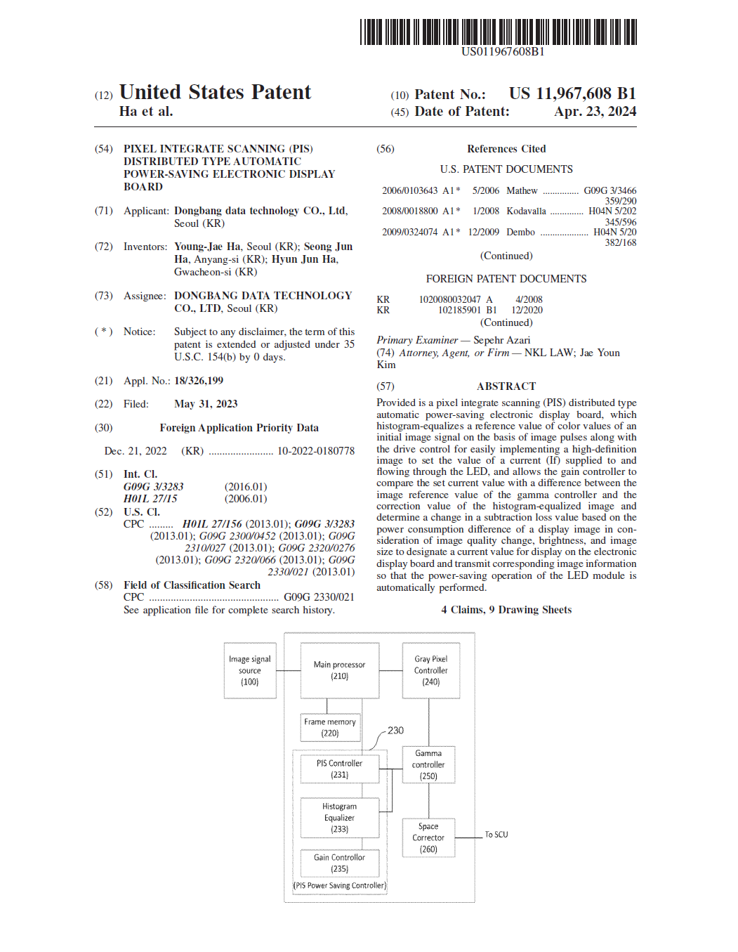 해외특허-11967608 PIXEL INTEGRATE SCANNING (PIS) DISTRIBUTED TYPE AUTOMATIC POWER-SAVINGELECTRONIC DISPLAY BOARD