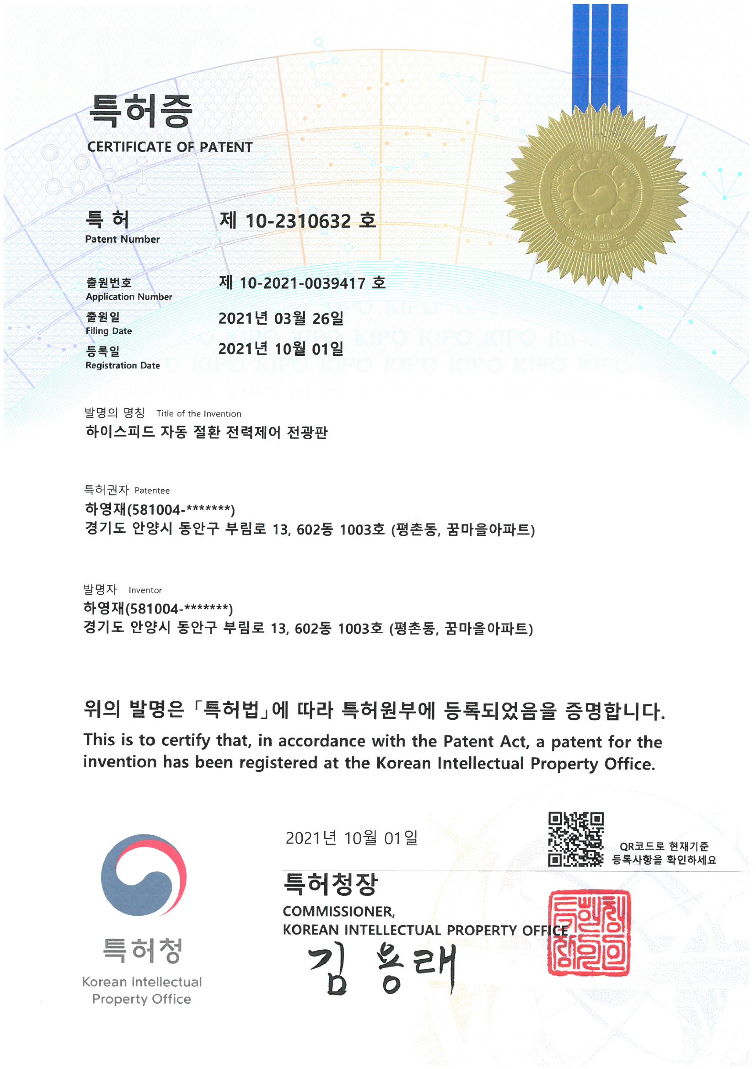 특허-제 10-2310632호-하이스피드 자동 절환 전력제어 전광판