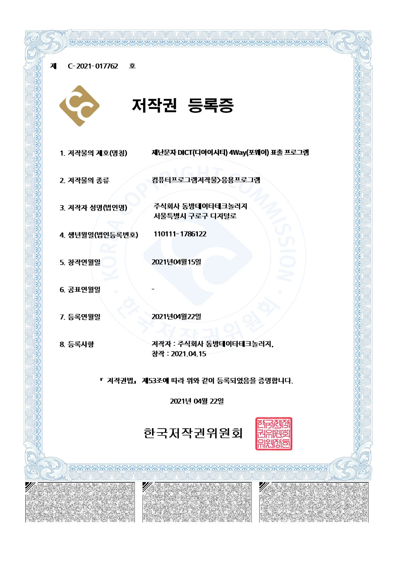저작권등록 - 재난문자 DICT(디아이시티) 4Way(포웨이) 표출프로그램