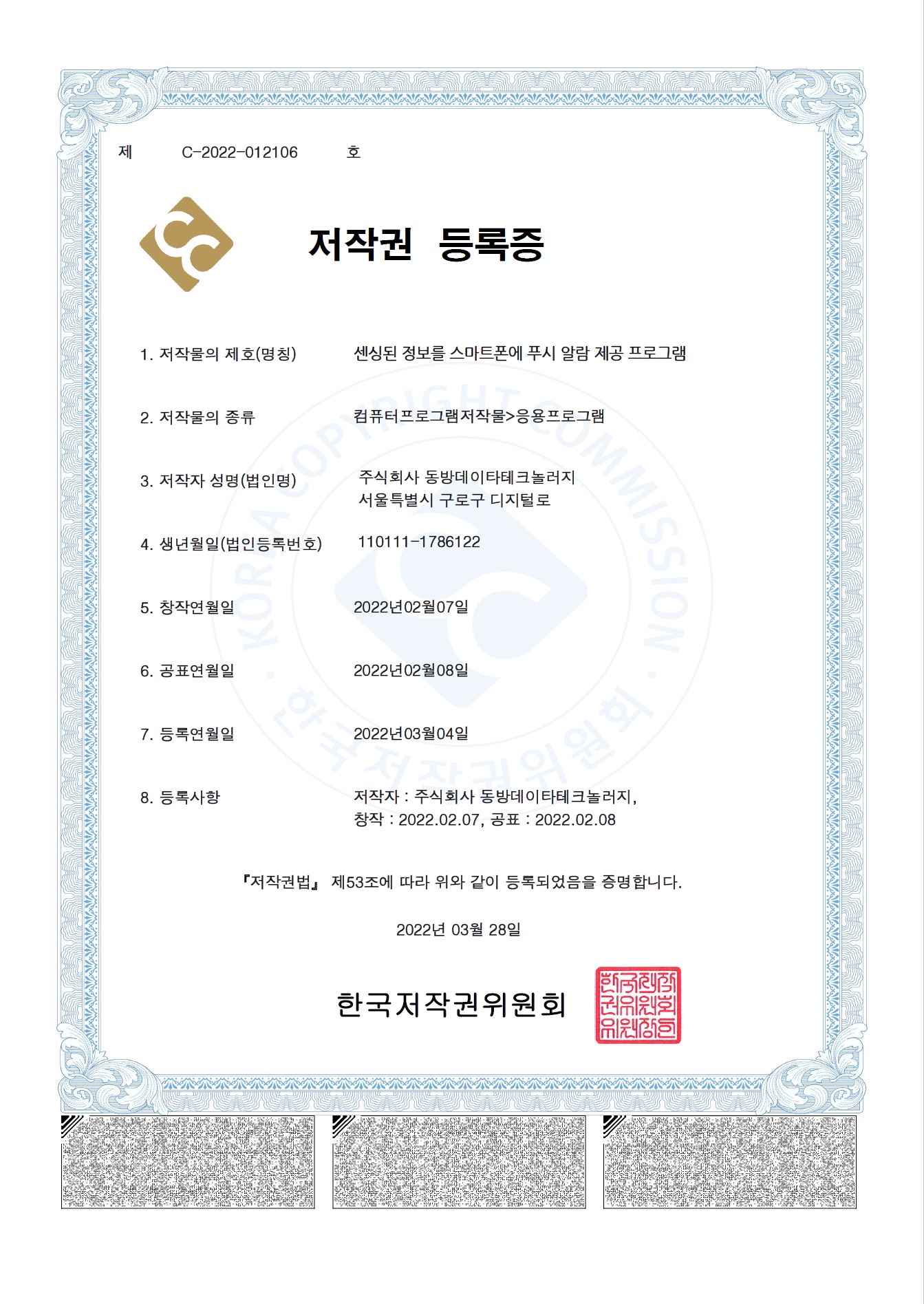 저작권등록-센싱된 정보를 스마트폰에 추시 알람 제공 프로그램