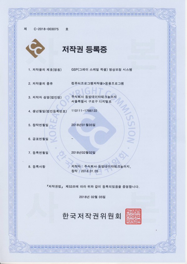 프로그램 등록 저작권 등록-GSP(그레이 스케일 픽셀)영상 보정 시스템 페이지 정보 작성자 관리자 댓글 0건 조회 4,771회 작성일 24-05-13 14:55 목록 게시판 리스트 옵션 검색 본문 이전글저작권등록-고속 이중화로 자동 절환 스위치 기능을 구비한 영상 디스플레이 프로그램 24.05.13 다음글전광판 멀티미디어 콘텐츠 디자인 스튜디오 24.05.13