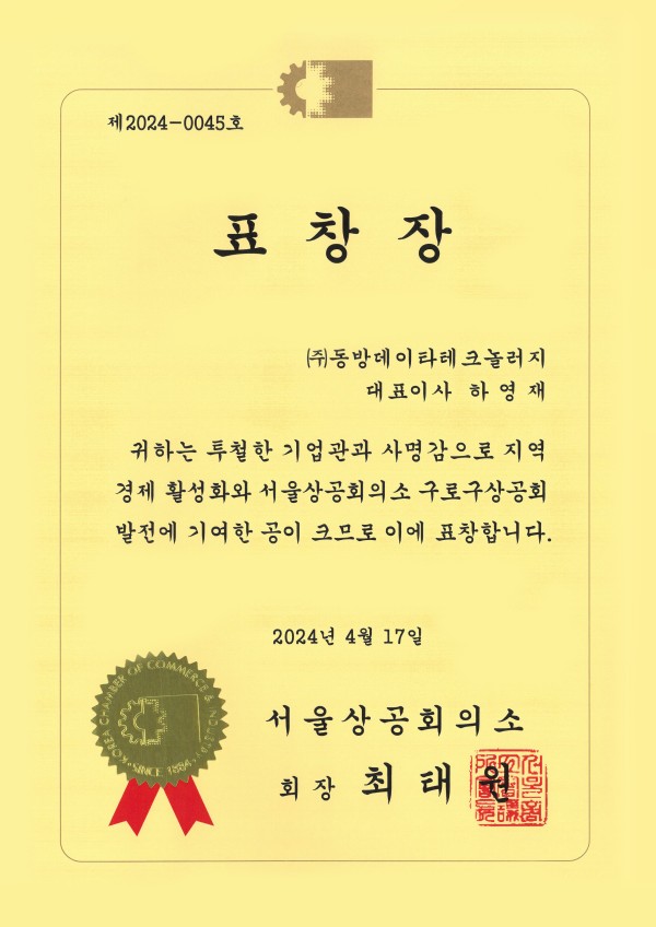 서울상공회의소 구로구상공회 표창